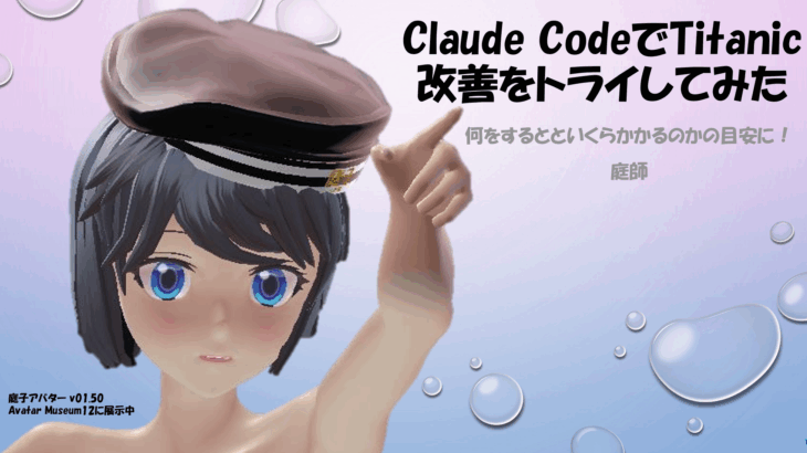 庭子 v0150 で導入した毛皮コートのliltoon設定です。体内に仕込んだライトに照らされてキレイに光る毛皮を目指しました。毛皮(Fur)は髙負荷です。注意して使ってください。今回は liltoon 1.9.0 を使いました。 こんな感じの毛皮コートです。 二種あります。光沢のある真っ白毛皮コートと半透明で青紫色に光る毛皮コートです。 liltoon プリセットに入っている「[髙負荷]ファーを […]