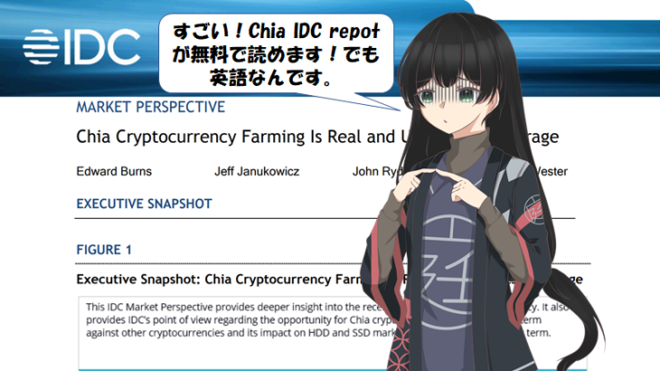 IDC reportは結構高いレポートです。それが現在Chia Home pageで無料で読めちゃうようです。Chiaの宣伝になるから公開する権利を買い取ったのでしょうか・・・。現に同じレポートがIDCサイトのここで$4,500(45万円程度)で売られています。ありがたく無料で読めるうちに読んでしまいましょう! 英語のpdfをdownloadしたら、Doc Translatorを使いましょう!10 […]