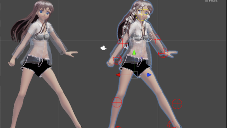 こちらも参照してください。 庭子アバターに導入している動的(Bone Constraint)補助ボーンをまとめておきます。 細かい位置、数値などは庭子アバター 配布所でBlenderファイルを公開していますので、そちらを参考にしてください。何をどういう意図でいれたのかまとめておきます。 基本構造 ほとんとがRotation Constraintで対応していいます。コの字膝のみPositon Con […]