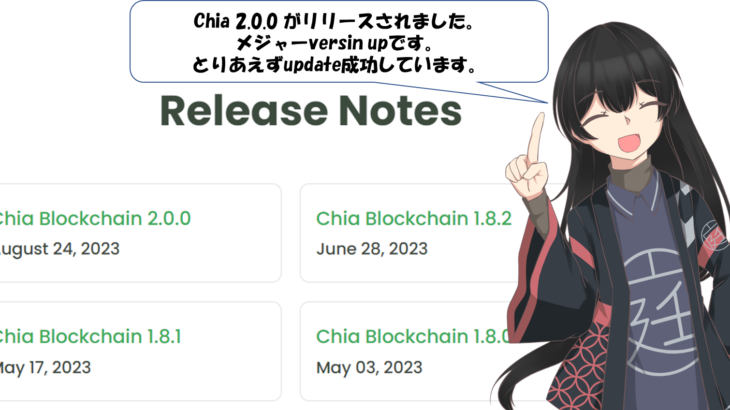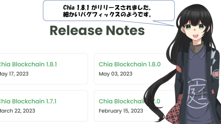 このところ月初めにupdateリリースされていましたが、今回は少し早めにバグフィックスリリースされたようです。当サイトもさっそくupdateしました。特に問題はないようです。 1.8.1 Chia リファレンス クライアントのバージョン 1.8.1 がダウンロードできるようになりました。このリリースには、GUI の改善とその他のさまざまなバグ修正が含まれています。 一般的なエンドユーザー エクスペ […]