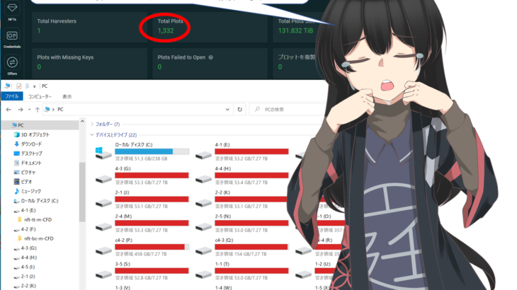 Chiaファーミング環境を掃除機でクリーニングしていたのですが、突然、Yottamaster HDDケースの一つのファンから異音が発せられ、データが壊れました。plotファイルを入れているフォルダがアクセス出来なかったのですが、chkdsk /f で修復したところ一部復旧。しかし、A:, B:, D: ドライブはいまだに使えず、他も一部データ破損で 1806plot→1334plotへ減少してファ […]