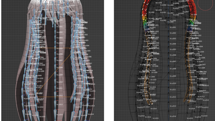 今回はBlender TIPSです。あるモデルの髪の毛オブジェクト・ボーン・ウェイト情報を、他のモデルに持って行きたくて方法を探しました。単にアペンド・統合するだけでは髪の毛が動かなかったのでメモとしてブログに書いておきます。 今回、揺れる髪の毛はvket用に編集したモデルのみに急遽実装しました。時間がなかったので・・・。なのでマスターモデルの方に逆輸入的に持ってくることになりました。 アペンド […]