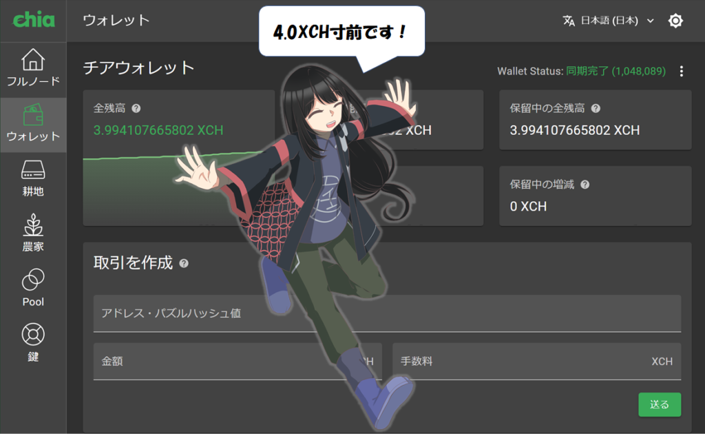 SpacePoolにしてから順調です。4.0XCH目前まで来ました。3.0XCHが9/15だったので、1806plot耕作で、1.0XCHにほぼ40日です。