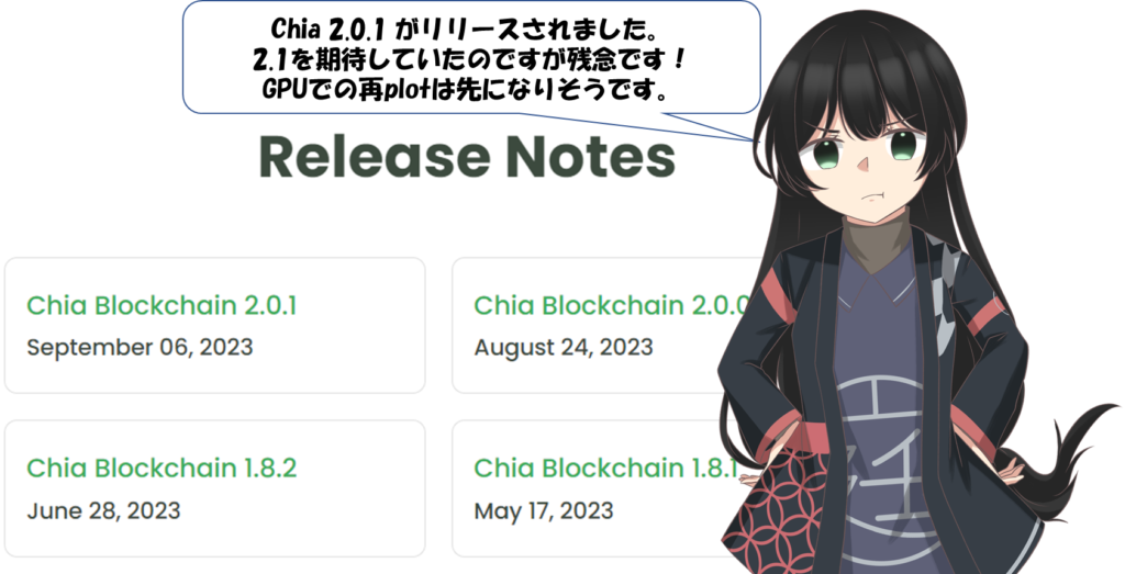 2.0.0Linux GUI またはchia plotters bladebit cudaplotLinux 上のコマンドを使用してバージョンを指定して圧縮されたプロットを作成した場合、それらのプロットは無効になるため、削除する必要があります。version を使用してそれらを再作成できます2.0.1。
