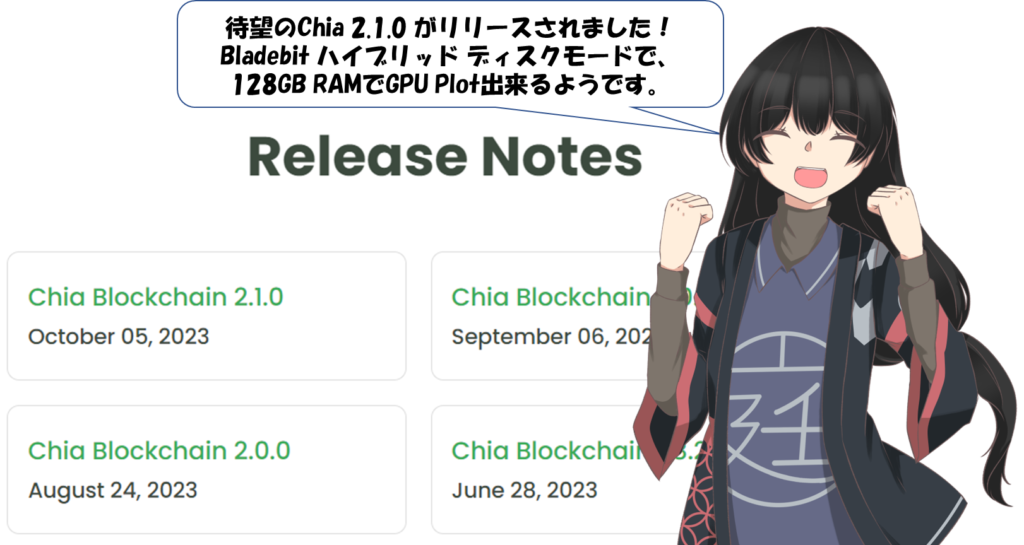 待望の Chia 2.1.0 がリリースされました!時間ができたら再プロットを試してみたいです。