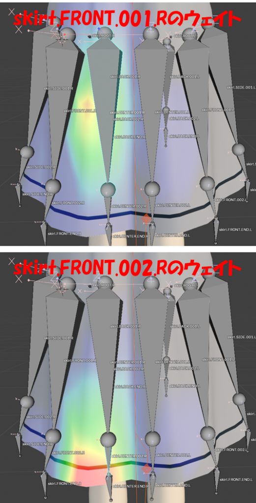 skirt.ROOT.L(変形なし)→skirt.FRONT.001.L→skirt.FRONT.002.L→skirt.FREONT.END.L(変形なし)